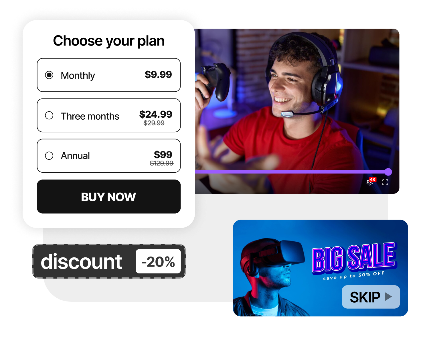 Start on-demand sales and membership, share promo сodes & trials, use advertising integrations